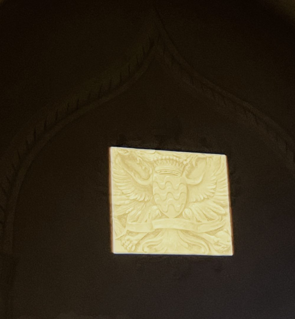 In questa sala, la Sala degli Stemmi, si trovano in volta lo stemma della famiglia Massel e nell’ogiva in parete quello dei Cacherano di Bricherasio. Lo stemma della famiglia Cacherano di Bricherasio raffigura un’aquila a due teste con la corona, il globo terrestre e la spada tenuti nelle zampe e uno scudo, a fasce a zig-zag orizzontali, bianche e nere o, più correttamente, d’argento. Il motto della famiglia è “Sureté”, “Sicurezza”, in francese. Di tradizione, nei motti delle casate, venivano inserite le virtù: in latino per le casate più antiche, in francese per quelle sorte in epoca moderna.