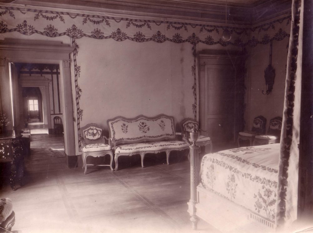 Come testimoniano alcune fotografie dell’epoca, queste sale ospitavano gli appartamenti privati della famiglia Cacherano di Bricherasio: nel corso degli anni, gli arredi sono stati trafugati o venduti, come il letto a baldacchino decorato con ricamo bandera.